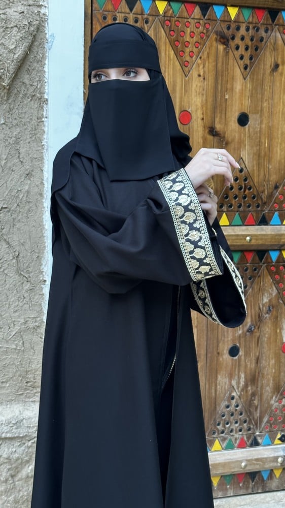 - الطرحة / اسود بطرف ذهبي (مجانية مع العباية )